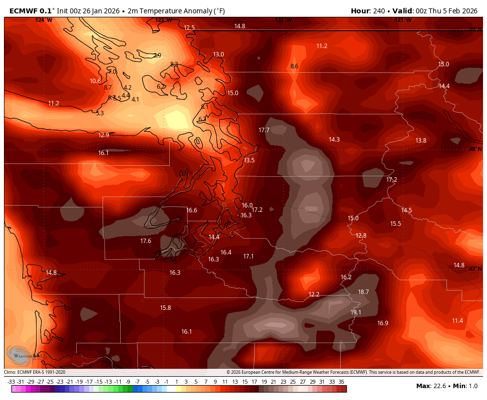 The Euro has pegged highs in Seattle of 62-64 degrees on next Wednesday. Wut? That would be right around the record highs for the date.