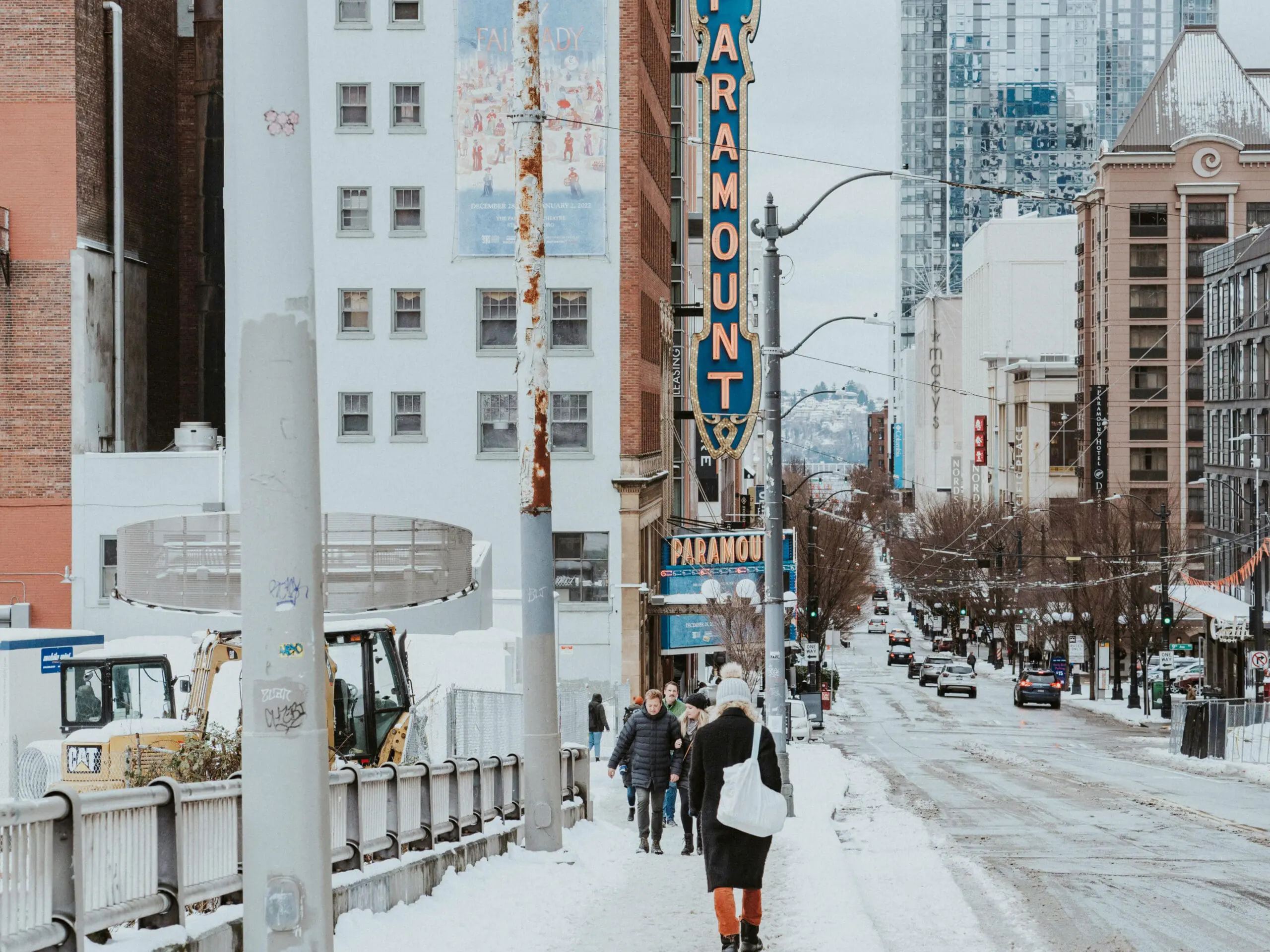Snow at the Paramount Theater in Seattle (Photo: Qingju Wen)